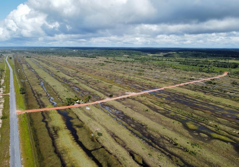 Execução de estrada vicinal as margens da BA-001, localizada na cidade de Belmonte-BA.